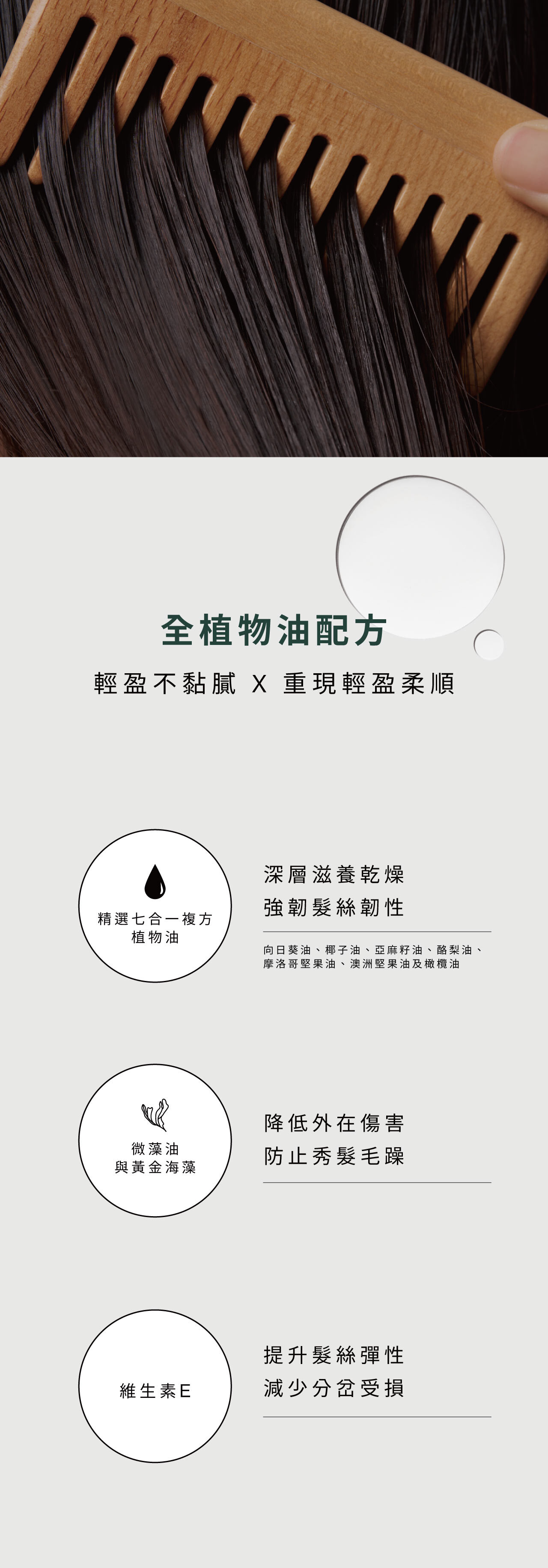 • 複方植物油脂修護配方,調理、保護、柔軟一次到位
