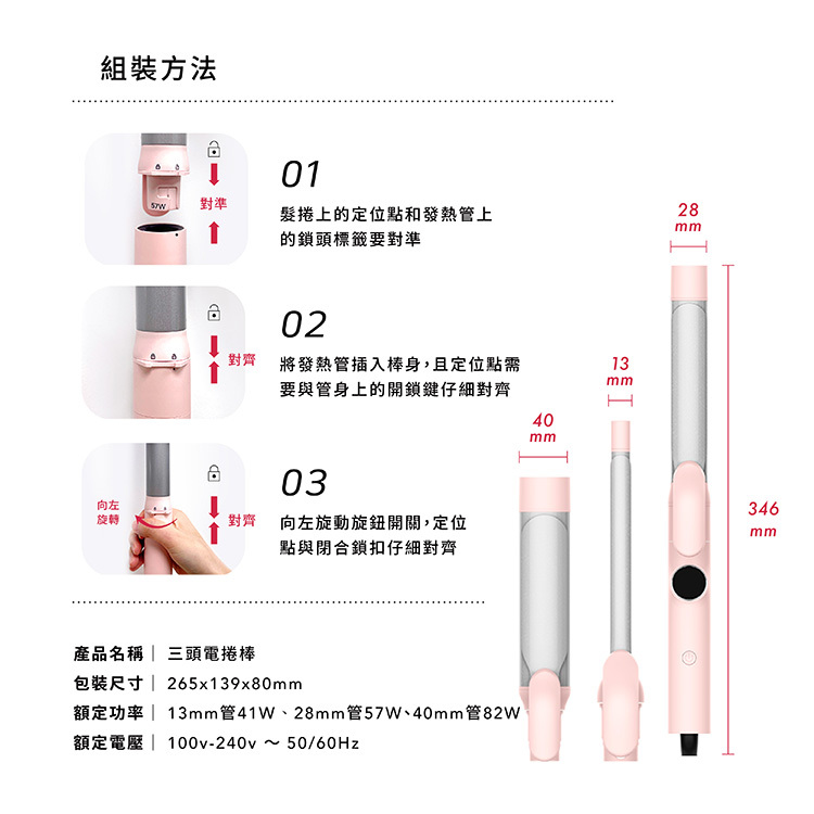 3種捲筒,13mm / 28mm / 40mm,適用於所有髮長和造型需求