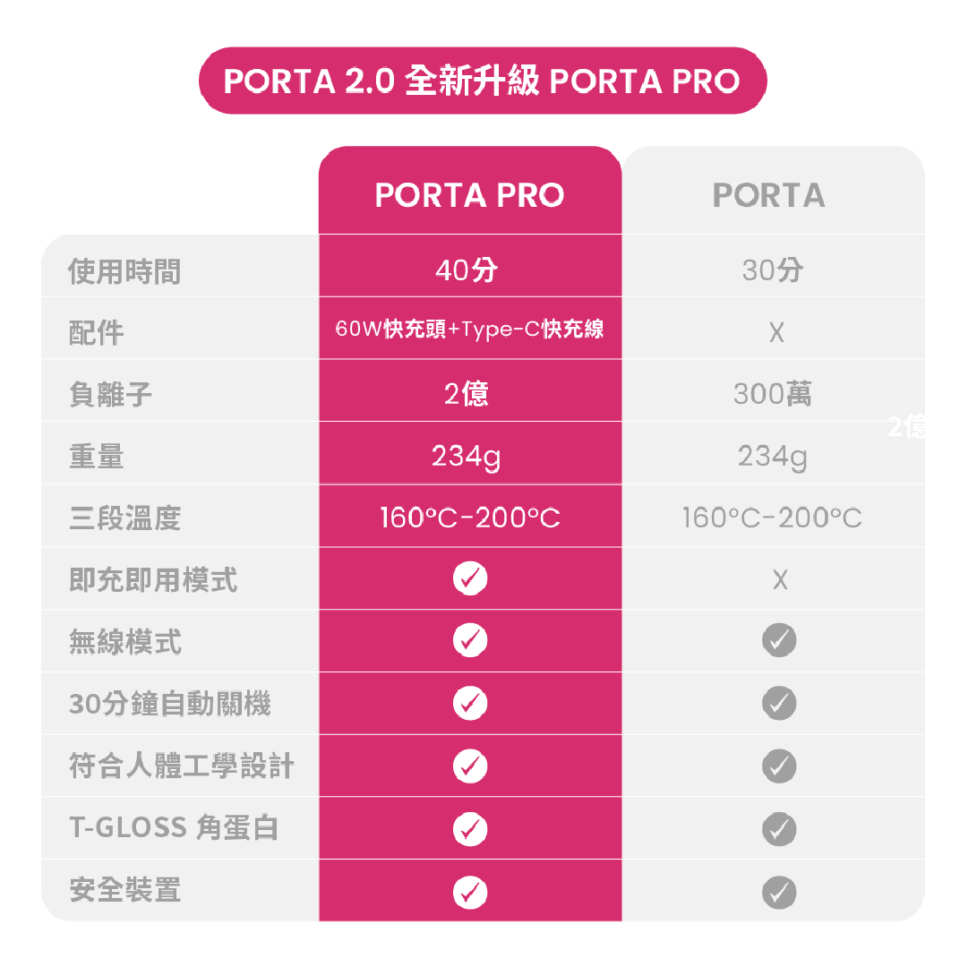 PORTA PRO 負離子無線直髮梳 ×1