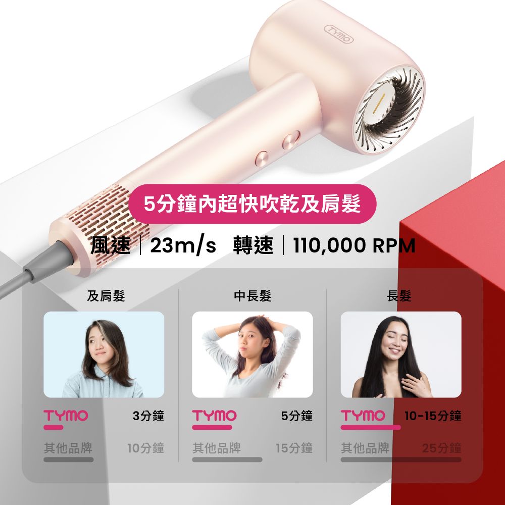 每秒23公尺集中大風速、特殊航太科技扇葉設計;穩定速乾,吹髮時間減半